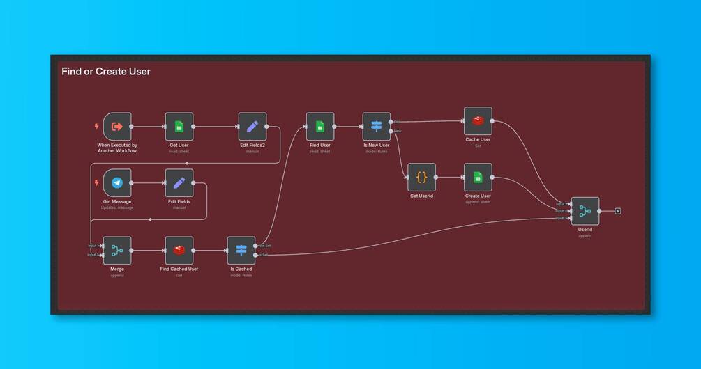 • User Lookup & Registration: Checks Google Sheets for the user. If not found, generates a new user ID and registers them.